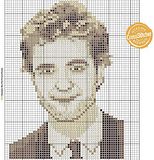 Desde pequena eu sei bordar ponto cruz, minha mãe sempre bordou e me ensinou e eu gosto de fazer isso às vezes, como passa tempo. Uma vez, procurando fotos do Rob, achei um gráfico de ponto cruz do Rob, achei lindo, até pedi para minha mãe fazer, porque achei que não seria capaz de bordá-lo. Mas esses dias, eu queria alguma coisa para bordar, pra passar o tempo, e decidi que iria bordar alguma coisa relacionada a saga. Procurei no Google Imagens, tinha poucos gráficos, e muito pequenos, de Edward, Bella e Jacob, e um da capa do livro Crepúsculo. Mas o do Rob, estava lá e o tamanho era perfeito pra imprimir e bordar. Resolvi que eu iria bordar o Robert Pattinson, afinal sou fã dele e se eu conseguisse seria perfeito.E não é que em duas semanas, quebrando a cabeça com as dificuldades de tanta cor, eu consegui terminar o bordado, vejam só minha obra: